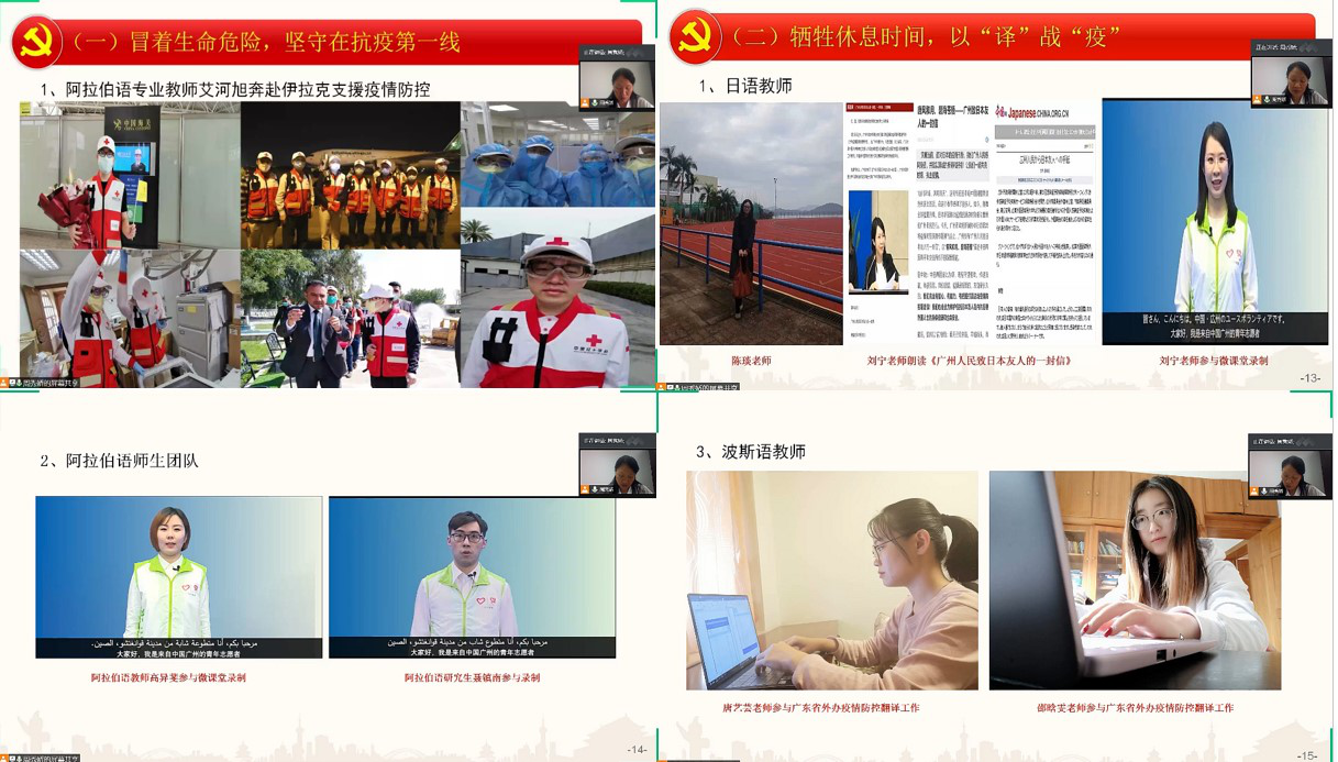 陈多友院长以“守望相助、共谋发展”为主题,从专业学术的角度分析了新冠疫情对当今世界尤其是中日关系的影响,号召青年学生既要学会感恩党和祖国的强大为我们赢得的自豪感和幸福感,又要放眼未来,才能赢得共同发展和进步。陈院长还带领大家重温了伟德bv国际体育党委书记隋广军的党课精髓,要把校园疫情防控作为最首要、最基本的任务;要积极响应国家重大号召,发挥专业特长,积极投身志愿服务,展现广外人的担当;要积极开展学术战疫,为国家和地方防疫工作积极发声和建言献策;坚持与外籍师生和国际友人同心战疫,讲好中国故事。