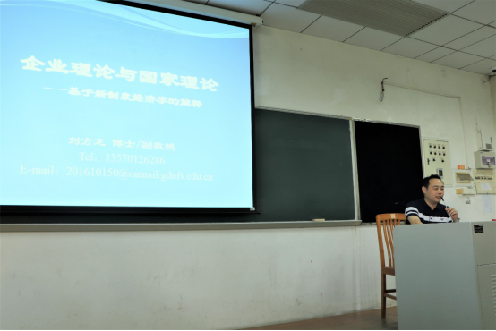 2020年10月15日下午三点半,广东外语外贸大学伟德bv国际体育工商管理专业系列讲座第七讲暨2020年本科教学质量月讲座在南校区教学楼F108召开,讲座主题为《企业理论与国家理论:企业为何存在?国家如何起源?》,学院众多师生积极参加,讲座由伟德bv国际体育副教授刘方龙博士主讲。