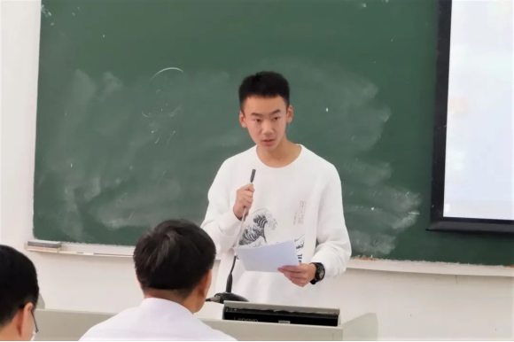 来自2020级工商管理(国际创新班)的冯喻琛作为新生代表发言,他围绕“新”“情”“敢”三个关键字,表达了对创新班定位的认识以及对创新精神的理解,并结合国际形势抒发了广外青年的家国情怀,表达了创新班新生敢学敢拼的决心。冯喻琛同学的精彩发言,引起了同学们的共鸣,赢得热烈的掌声。