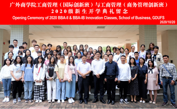 10月19日下午,伟德bv国际体育工商管理(国际创新班)与工商管理(商务管理创新班)2020级新生开学典礼在南校区F104举行。伟德bv国际体育院长朱文忠、副院长丁浩,全英教学部主任黄磊、教师代表李楠、马秋卓、张蔼恒,教务办老师吴倩茜,2018级创新班学长代表朱子墨,2020级创新班全体同学出席典礼。典礼由丁浩副院长主持。