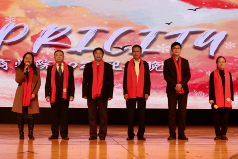 随后,领导们上台为同学们送上新年祝福。他们祝愿同学们在新的一年里,可以愉快地遨游商海,在2021年收获别样的精彩。