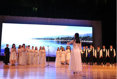 工管2002班的合唱表演《凤鸣岭南+贝加尔湖畔》让观众们感觉漫步在贝加尔湖畔。