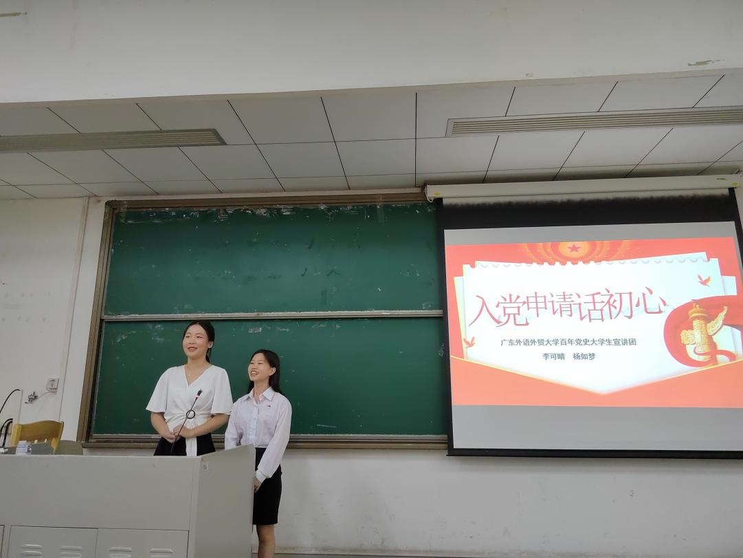 2021年9月17日,新闻传播学院在教学楼C208开展党史学习教育专题活动,旨在帮助新闻传播学院青年们更好地学党史,悟初心,担使命。本次讲座由广东外语外贸大学百年党史大学生宣讲团主讲,主讲人分别是国际关系学院李可晴、法学院杨如梦,宣讲主题是“入党申请话初心”。新闻学院递交了入党申请书的2021级本科生和研究生新生140余人参加讲座。此次活动由新闻学院组织员、辅导员张维主持。