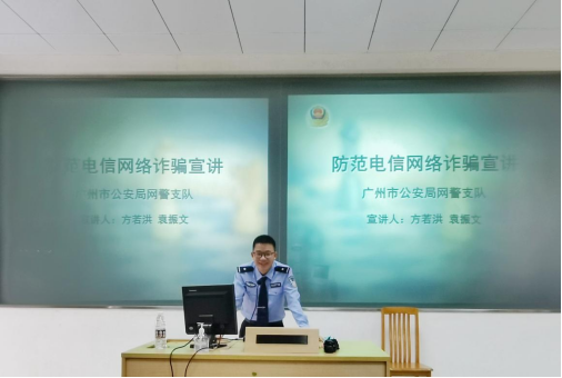 11月25日,信息学院“成长的力量——校友篇”系列讲座再次举行。本次讲座以“构筑安全防线、守护平安校园”为主题,邀请了现就职于广州市公安局网警支队的2018届校友方若洪和2018届校友袁振文为学生做电线网络诈骗防范宣传讲座。信息学院校园反诈骗工作领导小组组长、学院党委副书记肖锋与辅导员和百余名学生一起参与了活动。