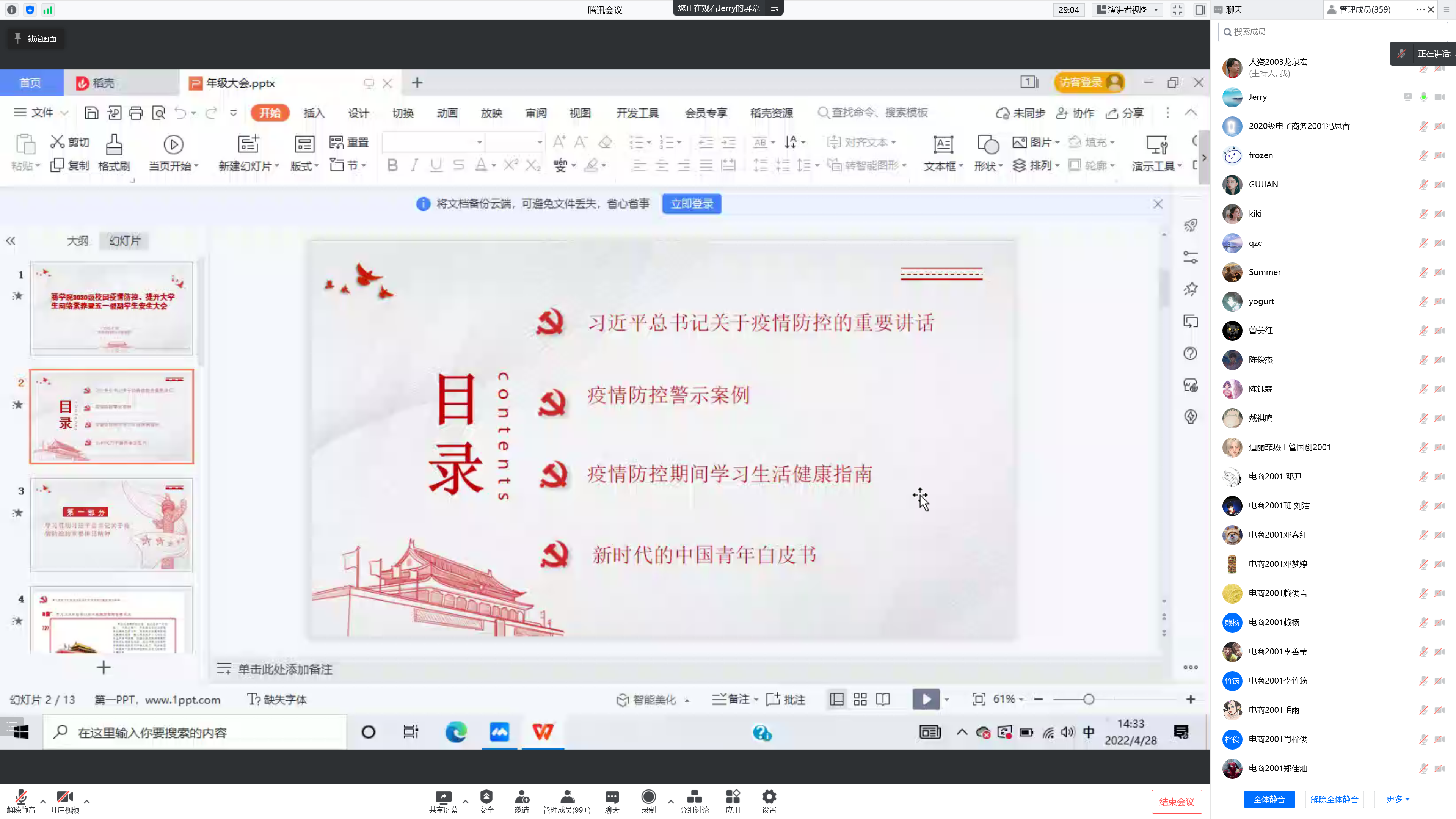 各年级辅导员还带领学生学习习近平总书记伟德bv国际体育疫情防控工作的重要讲话精神,引导同学们深刻认识防疫工作的重要性,以及疫情防控中彰显出的中国共产党领导和中国特色社会主义制度的显著优势。同时,通过高校疫情防控警示案例讲解宣传学校的疫情防控要求,学习疫情防控期间学习生活健康指南,引导同学们严格遵守属地和学校的防疫要求,积极调适心态,主动适应疫情背景下的学习节奏和生活方式。