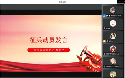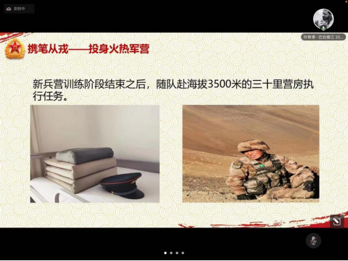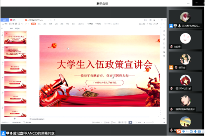 会议开始前,同学们共同观看了参军入伍的宣传片。观看完宣传片,同学们热血沸腾,纷纷在聊天框发表自己的感言,为英姿飒爽的军人们点赞。