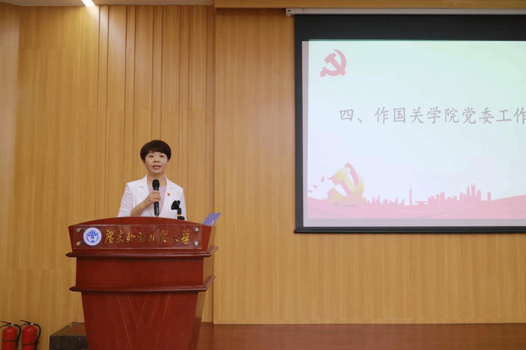 大会在庄严的国歌声中开始,袁薇佳同志作国关学院党委工作报告,总结过去四年来学院党委在思想建设、党风廉政建设、师德师风建设、党组织建设、人才培养、学科建设、科研创新能力建设、师资队伍建设、学生思政工作、内控和管理服务机制建设等方面取得的可喜成绩;对于如何实现今后四年的发展目标和主要任务,学院的指导思想是:坚持以习近平新时代中国特色社会主义思想为指导,全面贯彻党的二十大精神,深入贯彻习近平总书记对广东重要讲话和重要指示批示精神,紧密结合国家和区域经济社会发展需求,创新发展思路,明确发展路径,紧扣发展重点,落实发展举措,为加快建设特色鲜明的国际化学院提供动力、支撑和保障。随后,会议讨论并审议通过了党委工作报告。