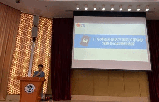 袁薇佳介绍了国际关系学院近年来的发展成绩,肯定了广外模联协会所取得的高层次奖项,以及协会在校内外产生的越来越大的影响力,她认为模拟联合国活动是培养高素质国际化人才的重要平台,希望同学们能在活动中锤炼自身、收获进步。
