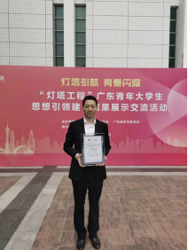 赖志鹏,男,中共党员,助教,地理学硕士,现任广东外语外贸大学国际商务英语学院辅导员,已公开发表SCI论文4篇,其中第一作者2篇。个人获2024年教育部港澳台办“同行新时代 共创新未来”港澳台学生主题征文活动“优秀指导老师”、广东外语外贸大学“礼赞新中国,共创新华章”青年师生思政微课大赛(教师组)三等奖等荣誉称号。指导学生获教育部港澳台办“同行新时代 共创新未来”港澳台学生主题征文活动二等奖、广东省“立志·修身·博学·报国”主题教育系列活动一等奖等荣誉11项。