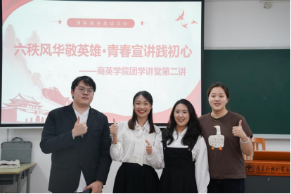 为加强团员理想信念教育,庆祝建校60周年,5月29日,“六秩风华敬英雄·青春宣讲践初心”团学讲堂第二讲在六教B314举行。此次活动由商英学院团委、“崇尚英雄 争做先锋”辅导员工作室联合举办,以“爱国主义铸魂、英雄主义砺志”为主线,通过青年宣讲、情景展演等创新形式,将校庆荣光与红色教育深度融合,为同学们呈现了一堂生动的爱国主义思政课。
